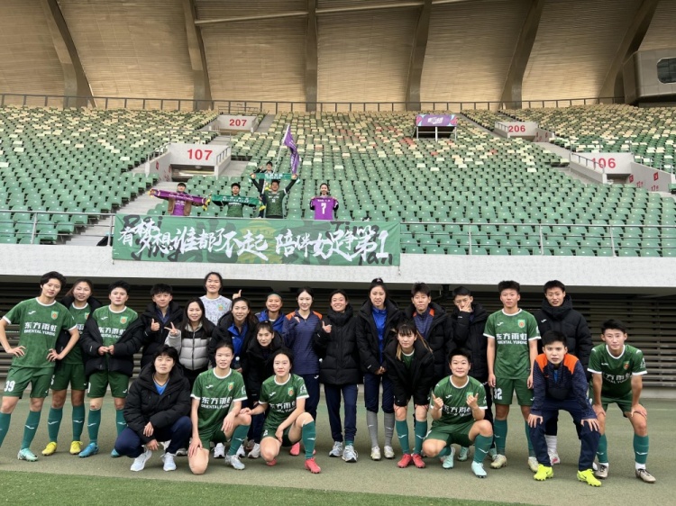 與5名球迷一起從北京來到延安的,還有一面印有“有夢想誰都了不起,與女足一起爭第一”的橫幅。比賽結束后,北京女足全體隊員來到5名球迷所在的看臺下致謝,并合影留念?!埃ㄋ麄儯┱媸遣蝗菀装?,非常感謝他們的支持!”北京女足主帥于允表示,能在客場聽到助威聲,讓全隊都十分感動。