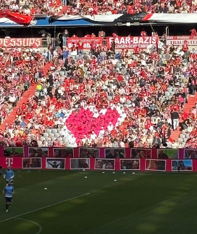 3月9日訊 本輪德甲,拜仁在主場2-3不敵波鴻?!秷D片報(bào)》報(bào)道,拜仁安聯(lián)球場看臺上標(biāo)志性的德國電信“T”字形圖案在本場比賽被心形圖案取代。