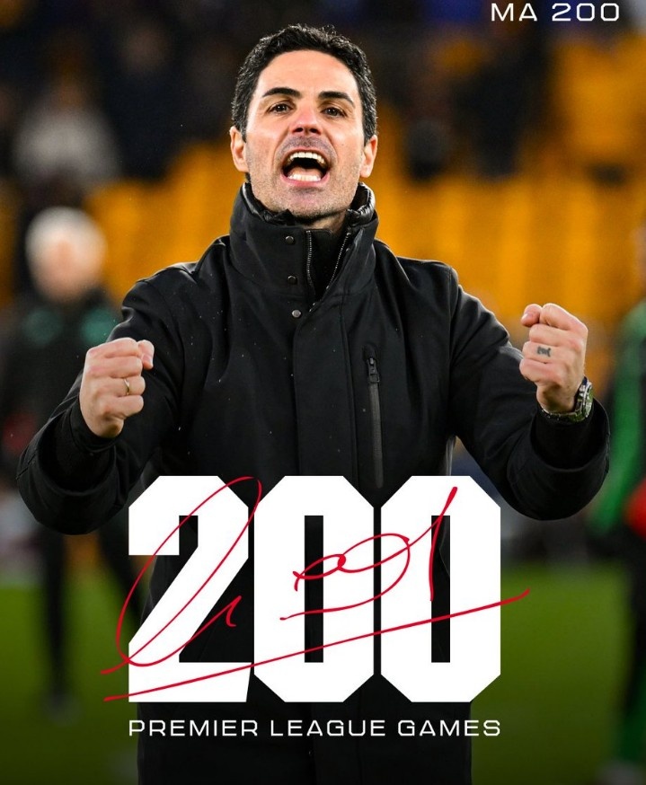 阿爾特塔迎執(zhí)教生涯200場英超里程碑,球隊官方曬海報紀念