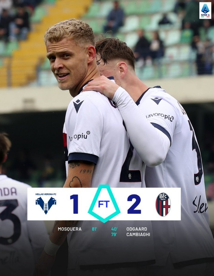 3月9日訊 在本輪意甲,博洛尼亞客場2-1擊敗維羅納,奧德加德和坎比亞吉分別破門。