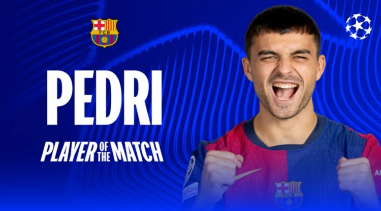 大師級發(fā)揮!歐冠官方:佩德里當選巴薩1-0本菲卡全場最佳球員