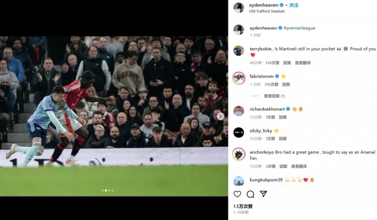 戰(zhàn)舊主阿森納替補(bǔ)登場!曼聯(lián)18歲中衛(wèi)海文社媒紀(jì)念英超首秀