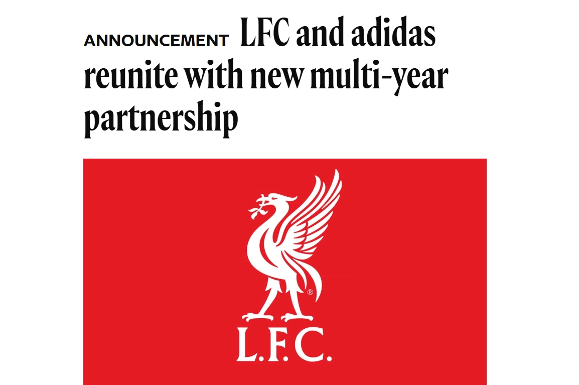 每年贊助7000萬鎊!官方:利物浦球衣主贊助由耐克變更為阿迪達(dá)斯