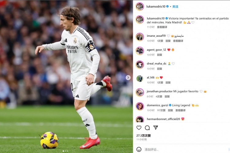 莫德里奇也曬出自己的比賽照,并配文:“重要的勝利!現(xiàn)在我們要專注于周三的比賽!馬德里前進!”