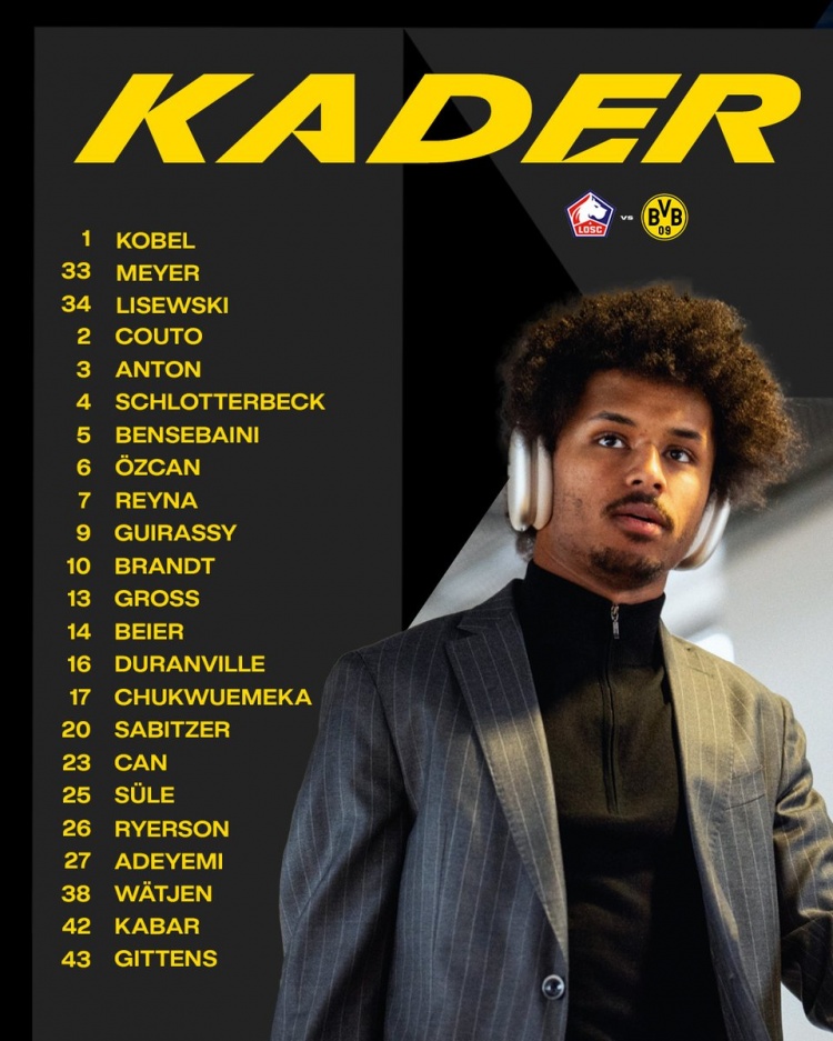 歐冠多特客戰(zhàn)里爾名單:吉拉西、阿德耶米、布蘭特在列