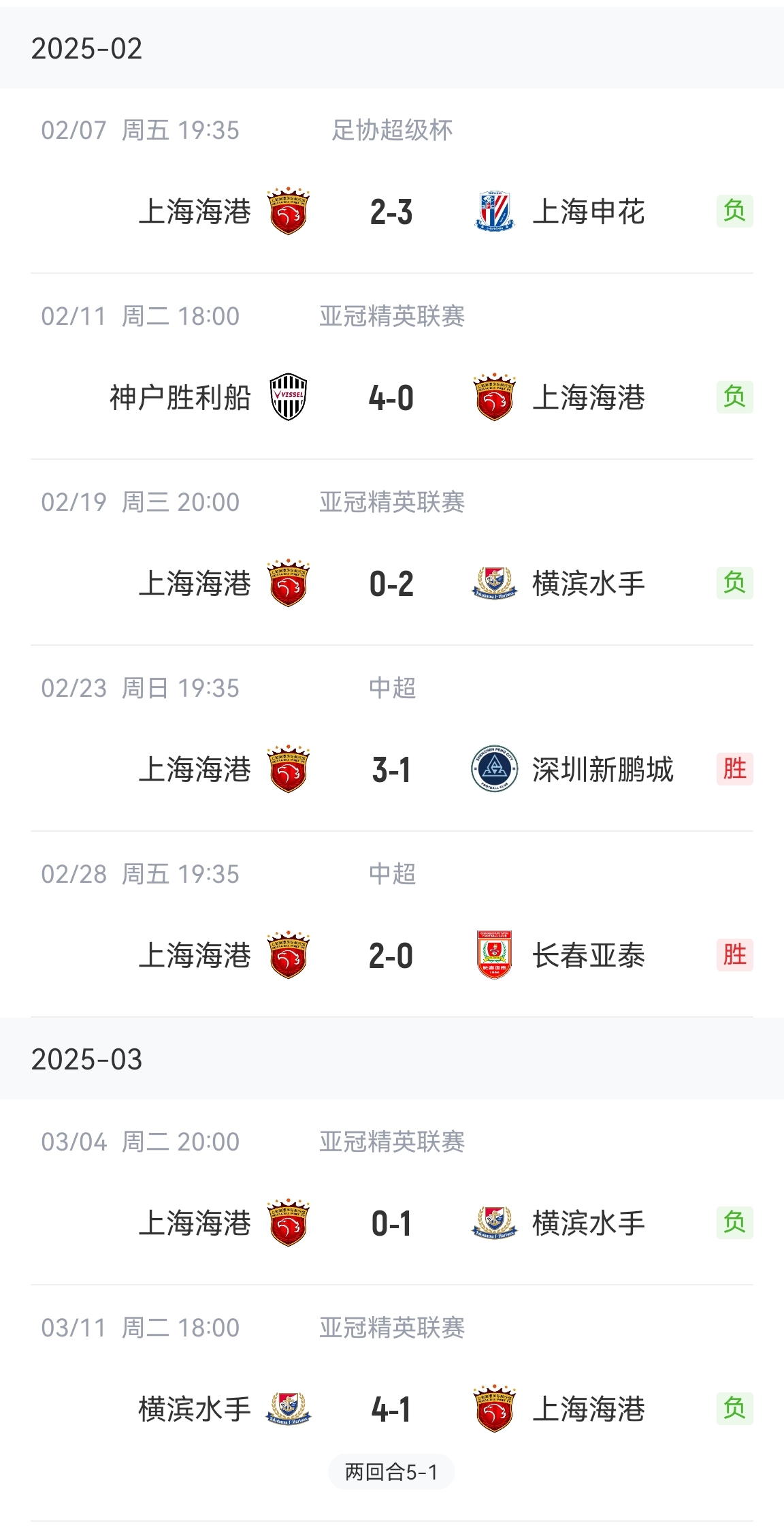03月11日訊 海港1-4橫濱總分1-5無緣亞冠八強(qiáng),這場比賽是海港2025年的第5場敗仗,這一數(shù)據(jù)已經(jīng)追平了2024全年。
