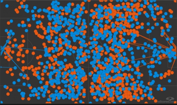 對(duì)比之下,馬競(jìng)的足球哲學(xué)則更加偏向于在穩(wěn)定防守后,完成的中路控制及推進(jìn)保障,這通過他們傳遞的路線圖也能夠看出,中場(chǎng)的銜接對(duì)馬競(jìng)來說可是太重要了,能不能順暢的過了中線,將會(huì)決定他們接下來向前推進(jìn)的效率。對(duì)此,后腰的作用格外重要。