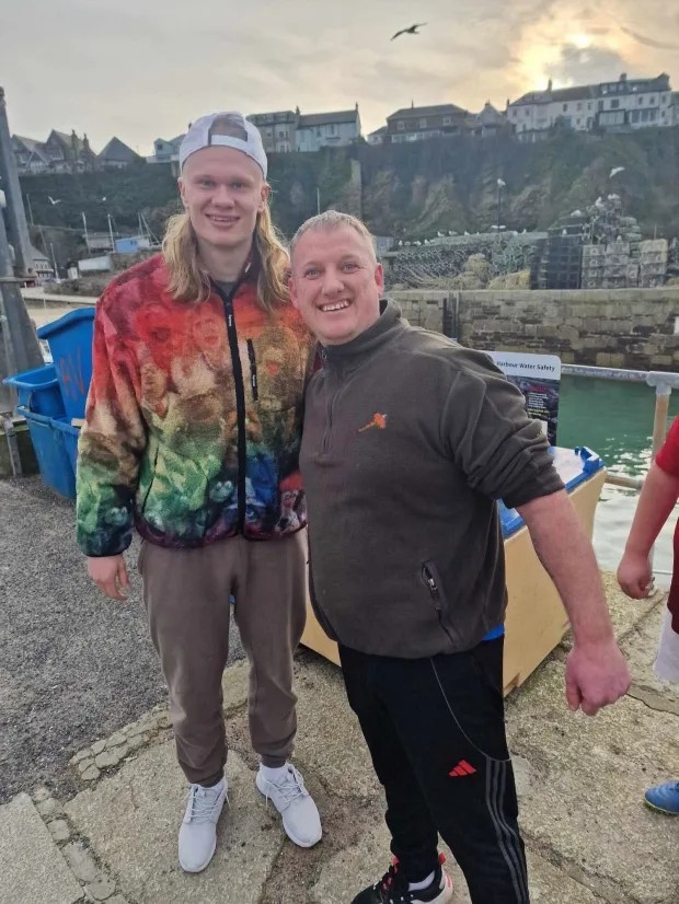 在休息時間,哈蘭德前往距離曼徹斯特家中約315英里的康沃爾紐基進行海釣。盡管哈蘭德沒有在現(xiàn)場逗留太長時間,但他仍抽空與球迷合影,甚至為一位曼城球迷在球衣上簽名。