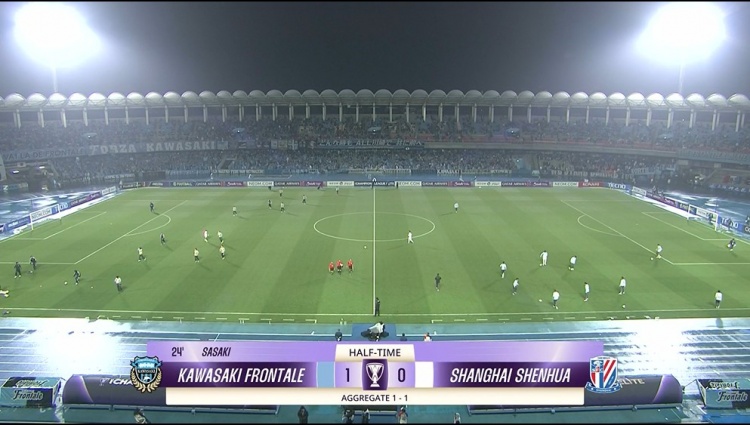 上半場(chǎng)比賽結(jié)束,上海申花0-1川崎前鋒。