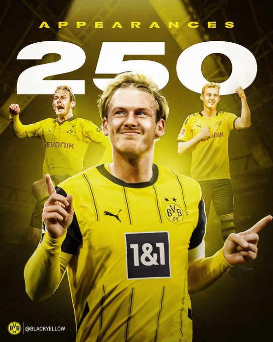 布蘭特多特生涯250場(chǎng)里程碑,前249場(chǎng)貢獻(xiàn)44球60助攻獲2冠