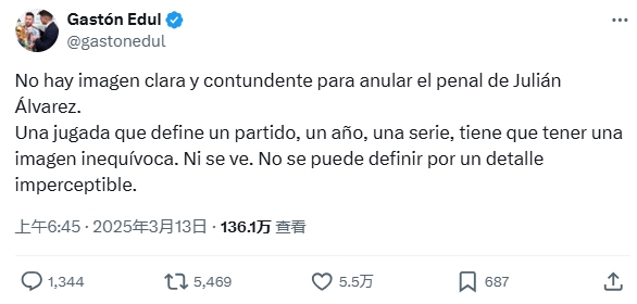 阿根廷國家隊跟隊記者埃杜(Gastón Edul)在社媒就此表達了自己的看法: