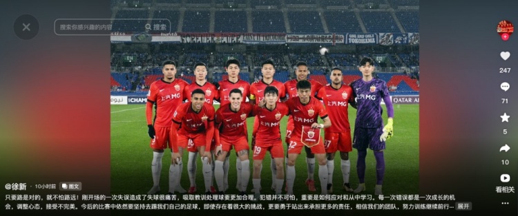 3月13日訊 海港球員徐新更新社媒,談到了自己亞冠的表現(xiàn)。