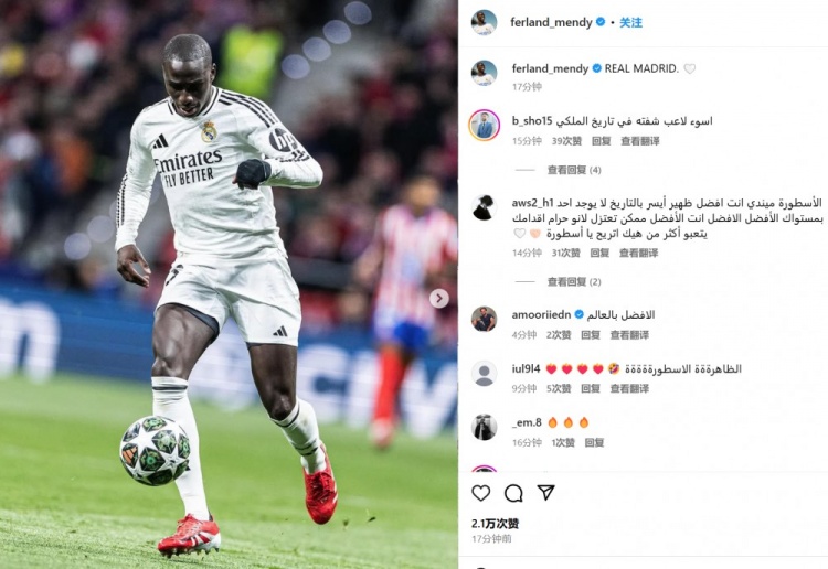 費(fèi)蘭-門(mén)迪曬出自己的比賽照,并配文:“皇家馬德里????
