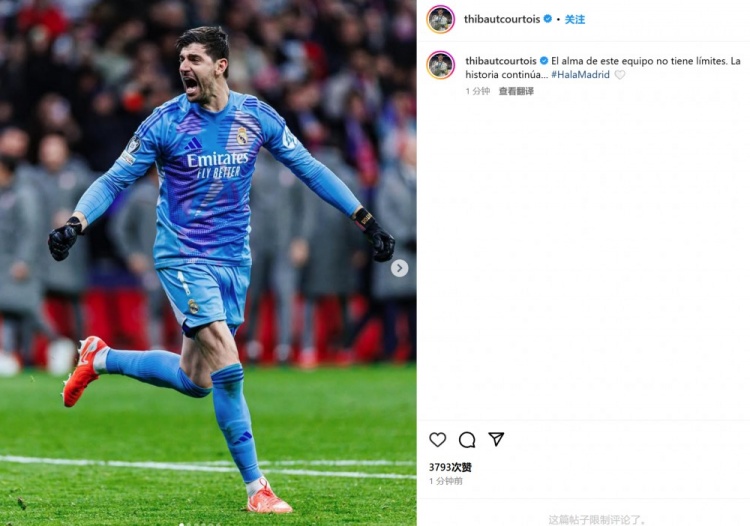 對(duì)老東家單場(chǎng)7撲救!庫爾圖瓦社媒曬狂奔慶祝照:故事還在繼續(xù)…