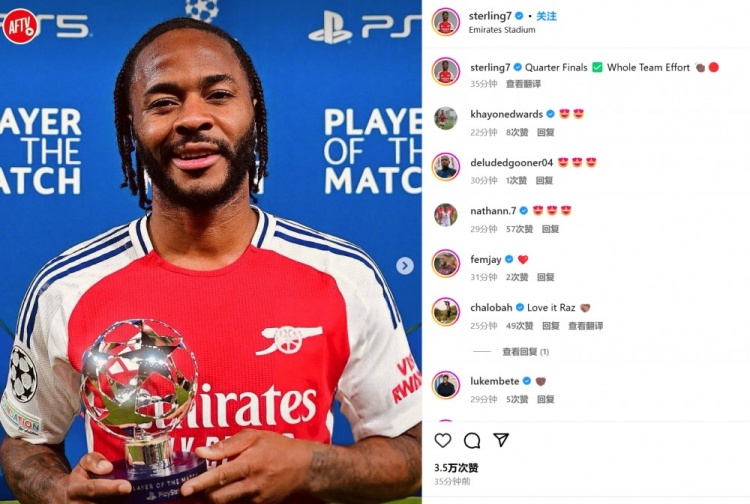 好起來(lái)了!斯特林兩送助攻,社媒曬全場(chǎng)最佳獎(jiǎng)杯:晉級(jí)八強(qiáng)!
