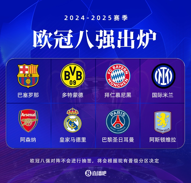 ??歐冠8強對陣:槍手vs皇馬|拜仁vs國米|巴薩vs多特|巴黎vs維拉