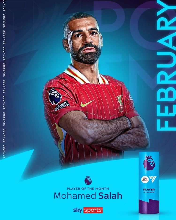 6場(chǎng)6球4助攻!官方:利物浦邊鋒薩拉赫當(dāng)選英超聯(lián)賽2月最佳球員