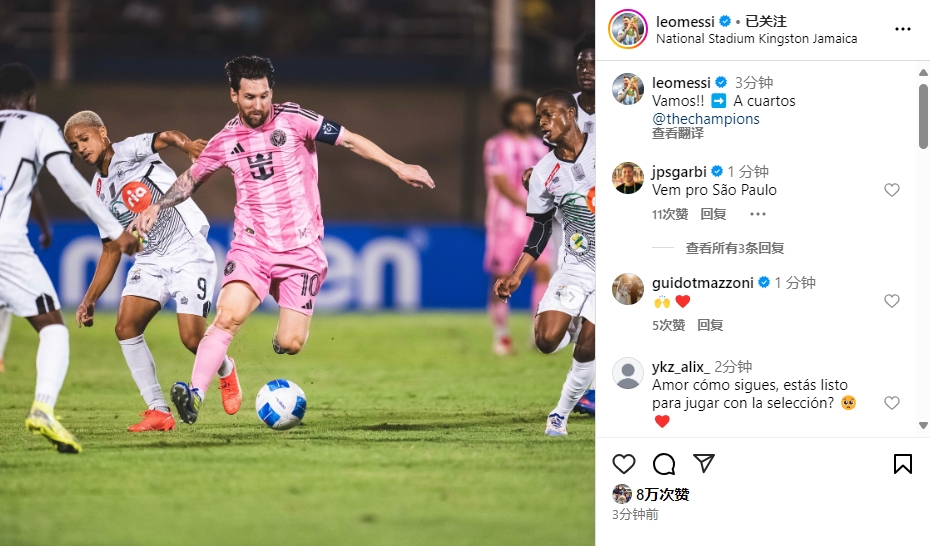 梅西更新ins:加油!!??進入中北美冠軍杯1/4決賽