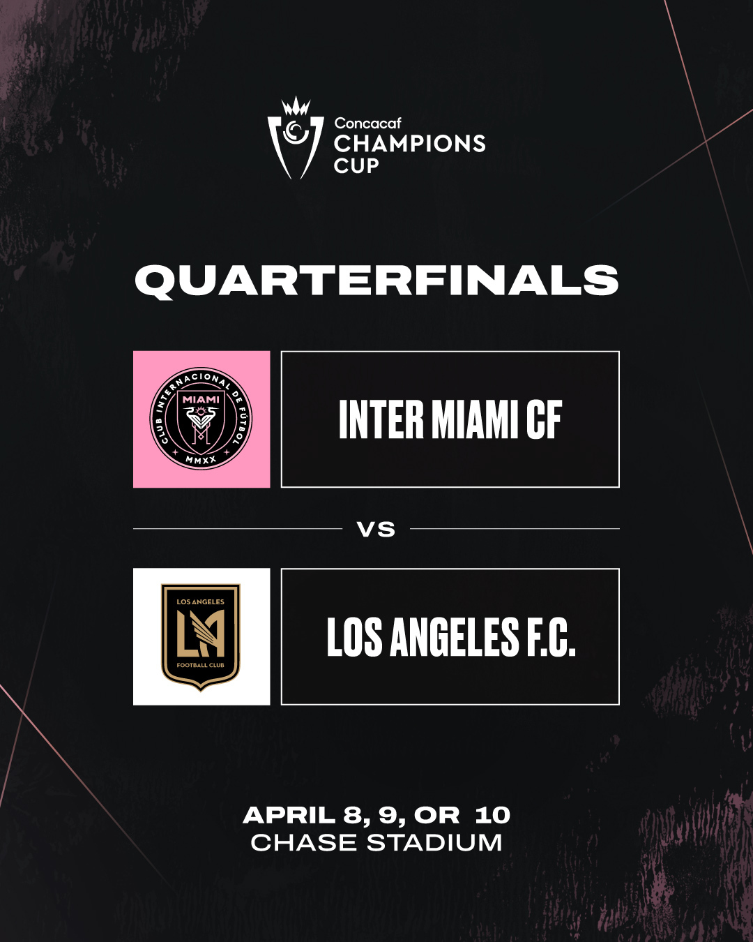 中北美冠軍杯1/4決賽,邁阿密國際將對陣洛杉磯FC,具體時(shí)間未定。