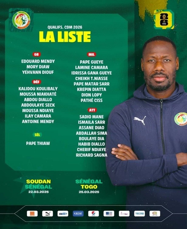 當(dāng)?shù)貢r(shí)間本周四,塞內(nèi)加爾國家隊(duì)公布了新一期大名單,備戰(zhàn)接下來對(duì)蘇丹(3月22日)和多哥(3月25日)的兩場(chǎng)世界杯非洲區(qū)預(yù)選賽。其中阿薩內(nèi)-迪奧首次入選塞內(nèi)加爾國家隊(duì)。