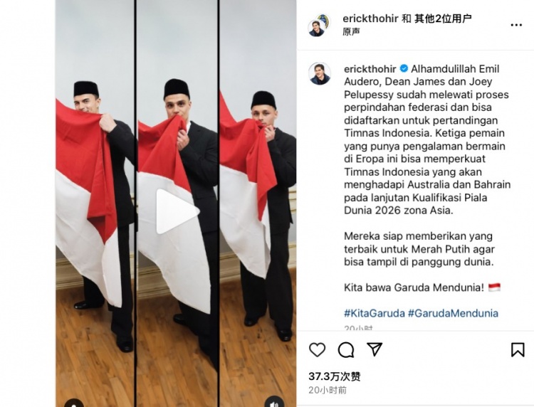 3月14日訊 本周,迪恩-詹姆斯、埃米爾-奧德羅、喬伊-佩盧佩在羅馬的印尼大使館完成宣誓,3人正式成為印尼公民。