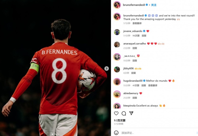 B費社媒慶祝勝利:3球+晉級下一輪!感謝球迷們昨晚的熱烈支持