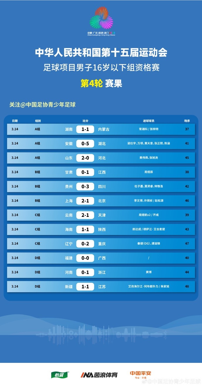 第十五屆運動會足球項目男子16歲以下組資格賽第4輪賽果
