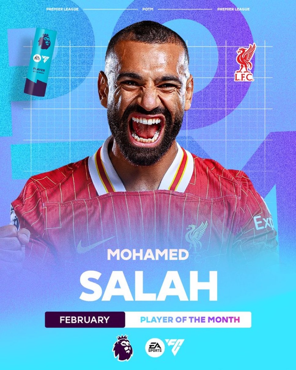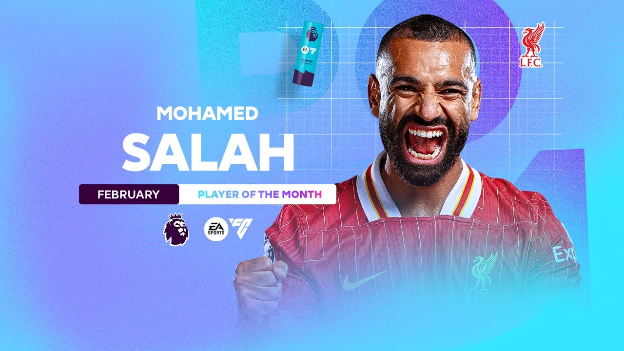 7次獲獎平紀(jì)錄!官方:薩拉赫當(dāng)選英超2月最佳球員,2月6場6球4助