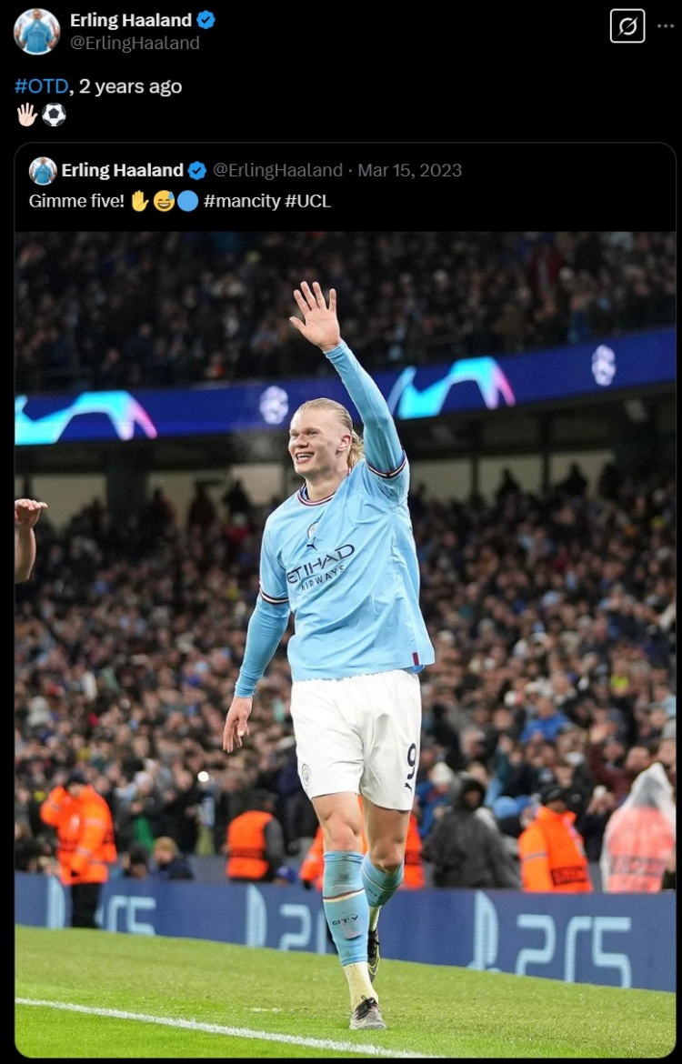 哈蘭德在個人社媒也轉發(fā)了自己當年的動態(tài),配文寫道:“2年之前??????????”