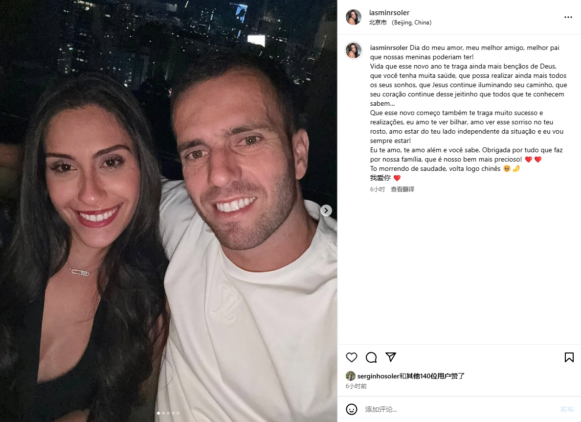 嫂子好!塞爾吉尼奧妻子中葡雙語(yǔ)告白:超想你中國(guó)人,我愛你??
