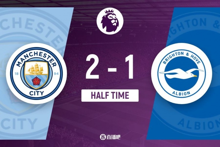 上半場傷停補時4分鐘,半場結(jié)束,曼城暫2-1布萊頓。