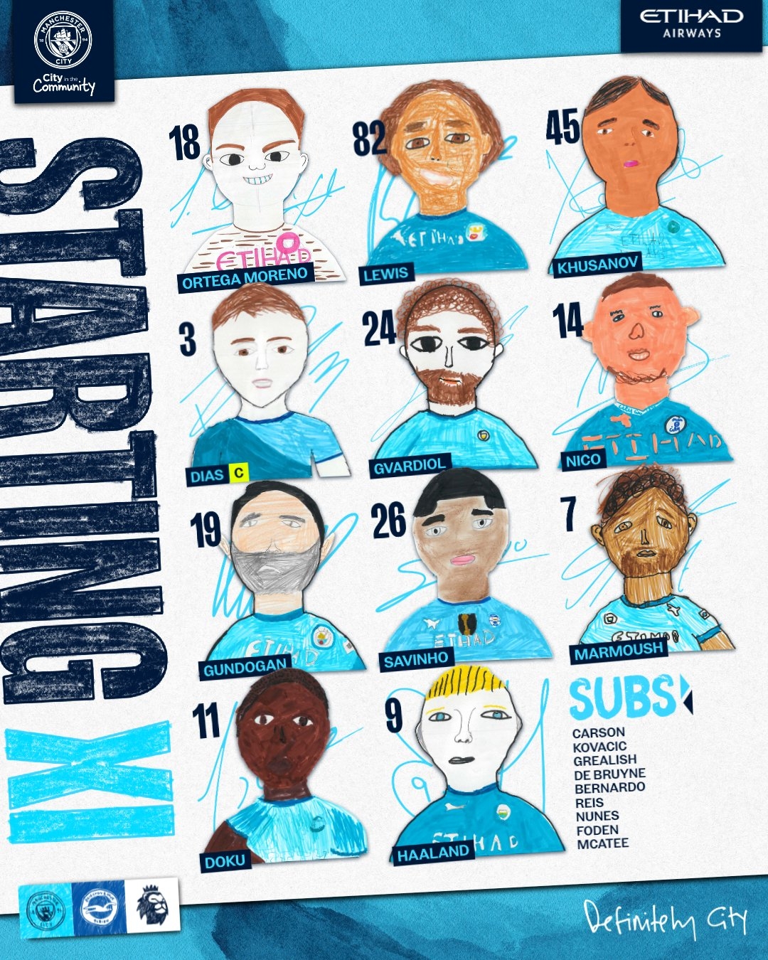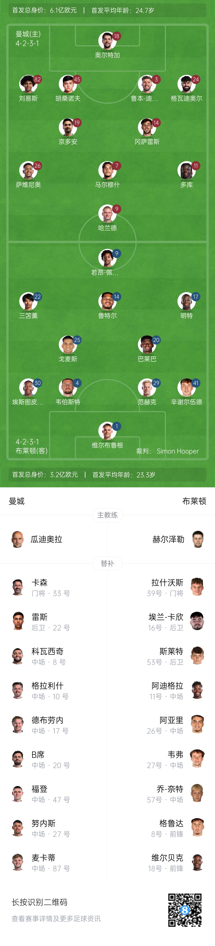 曼城vs布萊頓首發(fā):哈蘭德PK三笘薰,劉易斯、京多安出戰(zhàn)