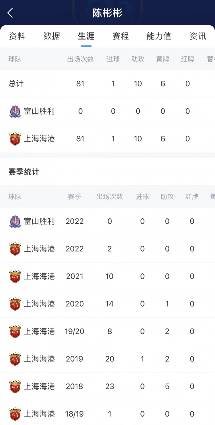 陳彬彬出生于1998年,今年6月將滿27歲,場上司職左前衛(wèi)和左翼衛(wèi)。此前他在上海海港(上港)效力多年,也曾到日本J3聯(lián)賽留洋。上賽季結(jié)束后,陳彬彬離開海港,隨后加盟南通支云。