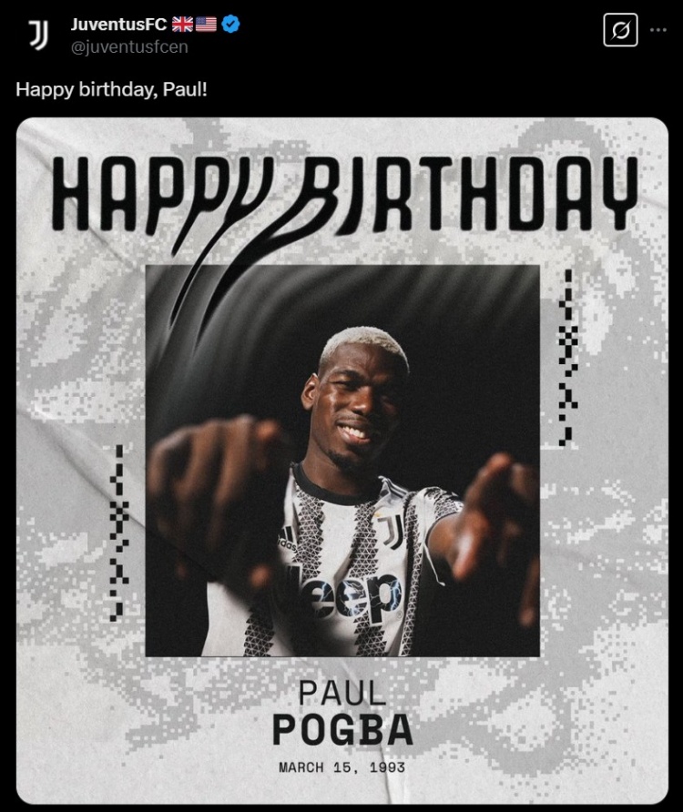 3月15日訊 今天是博格巴32歲生日,尤文圖斯官方也曬照祝這位舊將生日快樂(lè)。