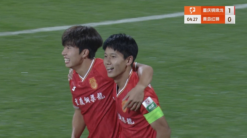 比賽第4分鐘,白余濤小角度打門擊中立柱,向余望補(bǔ)射破門,重慶銅梁龍1-0領(lǐng)先。