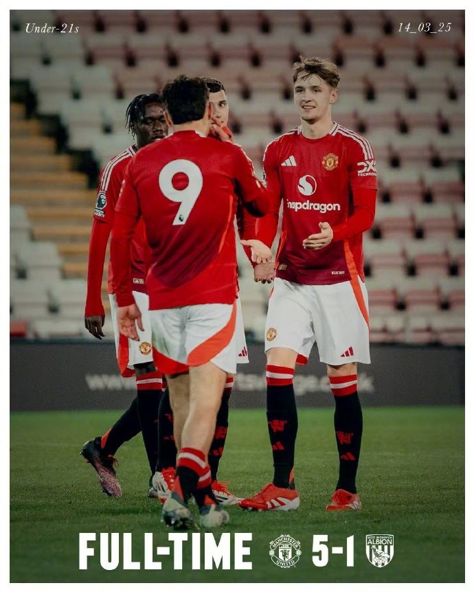 3月15日訊 在當(dāng)?shù)貢r間周五晚間進(jìn)行的英超二級聯(lián)賽中,曼聯(lián)U21隊(duì)主場5-1大勝西布朗U21隊(duì),位居積分榜第6位。