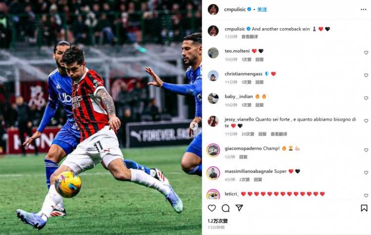 他也在賽后通過社媒曬出自己的進球瞬間照,并配文:“那么又是一場逆轉(zhuǎn)??”。普利西奇本賽季已經(jīng)為米蘭38場貢獻15球7助攻。