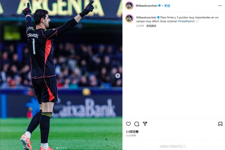 他也在賽后通過社媒曬出比賽照,并配文:“在一個非常艱難的客場向前邁出堅定一步并取得3分,很棒的勝利!#馬德里前進????”
