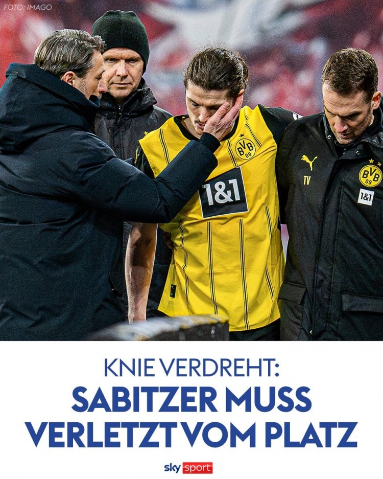 3月16日訊 多特在本輪德甲0-2不敵萊比錫,中場薩比策傷退。