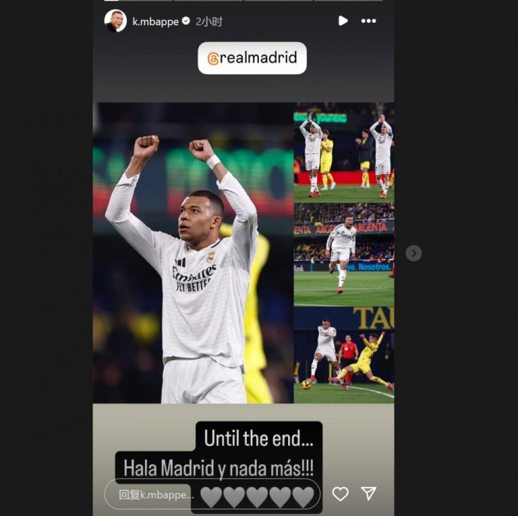 姆巴佩也在賽后通過社媒曬出自己的比賽照,并配文:“戰(zhàn)斗到最后一刻…馬德里前進(jìn),無需多言!??!”