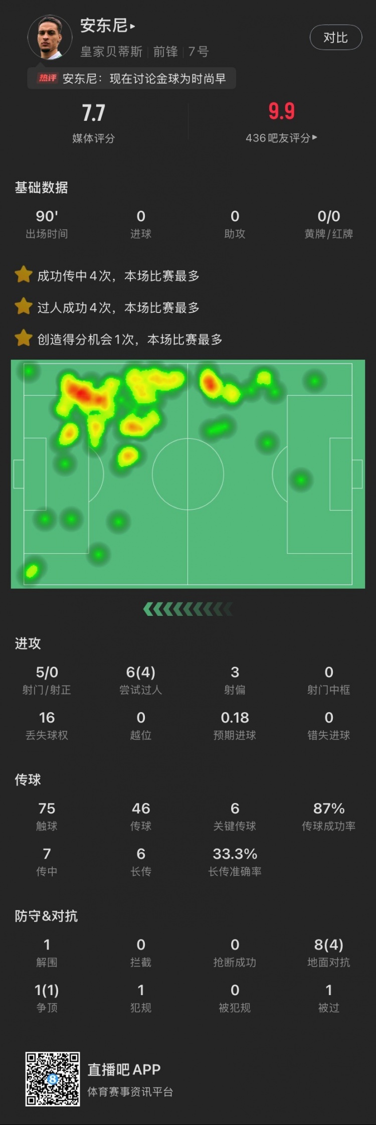 依然圓神!安東尼本場(chǎng):造逆轉(zhuǎn)進(jìn)球,6關(guān)鍵傳球,6次過(guò)人成功4次