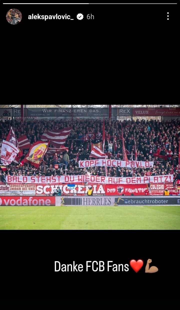 拜仁球迷也鼓勵他:“加油,帕夫洛維奇!你很快就能夠重返球場!”帕夫洛維奇也通過社媒曬出照片,并回復:“謝謝拜仁球迷們!”