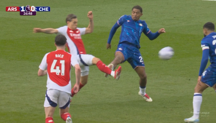 03月16日訊 英超第29輪,阿森納vs切爾西,比賽第28分鐘,韋斯利-福法納在爭(zhēng)搶中一腳蹬到特羅薩德的小腿,裁判判罰犯規(guī),但沒有出牌。