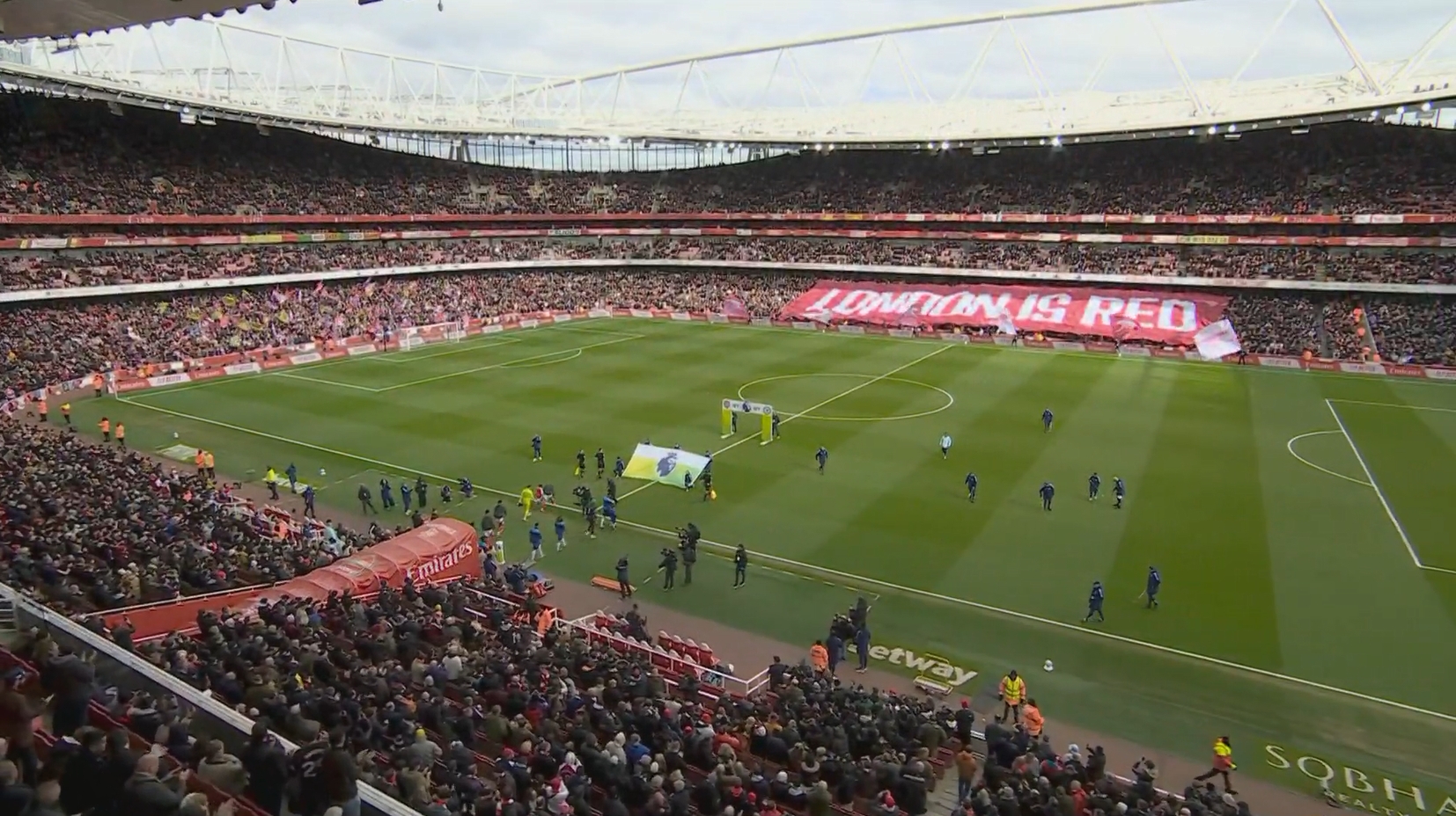 LONDON IS RED!阿森納vs切爾西入場(chǎng)階段,酋長(zhǎng)球場(chǎng)看臺(tái)展示tifo