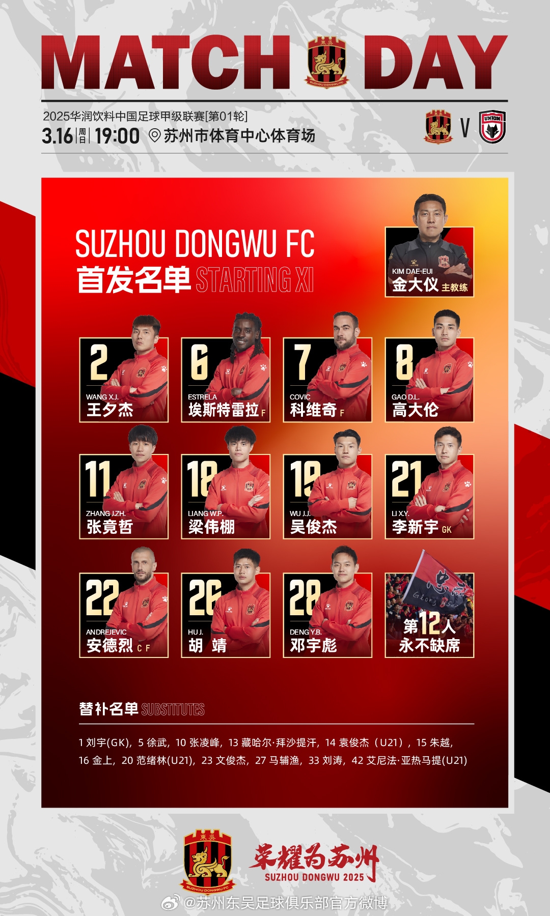 2025中甲聯(lián)賽第一輪 蘇州東吳 vs 陜西聯(lián)合 首發(fā)名單 ???