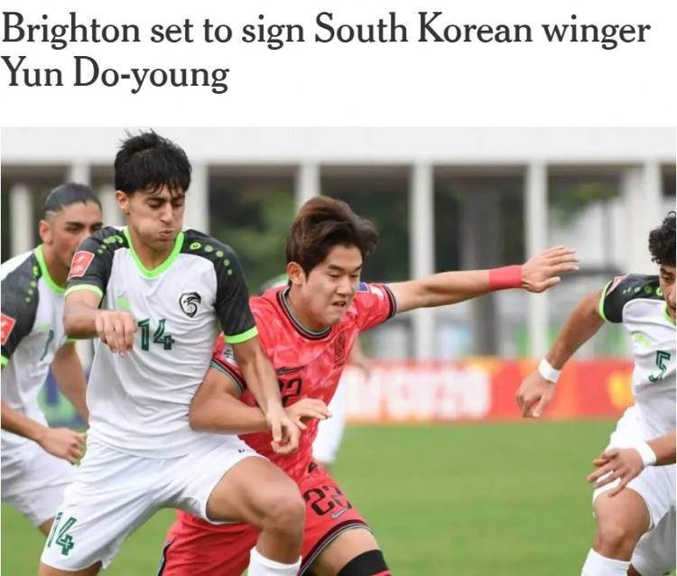 3月16日訊 The Athletic報道,布萊頓即將簽下18歲韓國邊鋒尹棹泳。