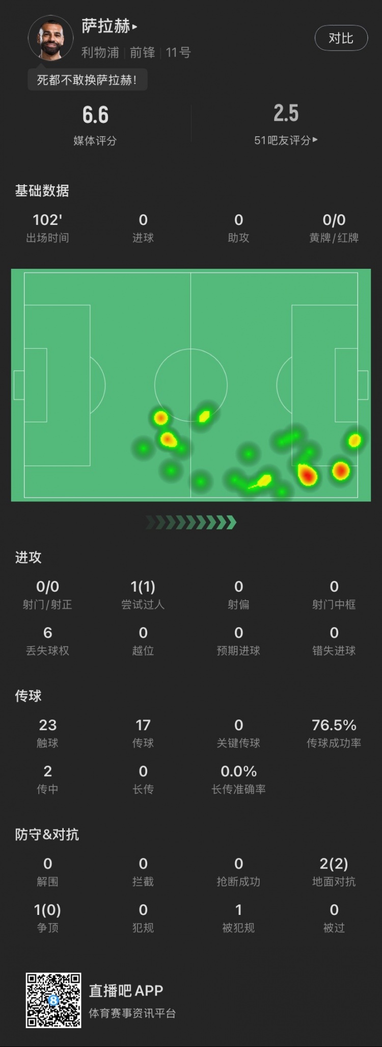 齋月的鍋?薩拉赫為紅軍打滿(mǎn)全場(chǎng)但0射門(mén),23年對(duì)陣曼城以來(lái)首次