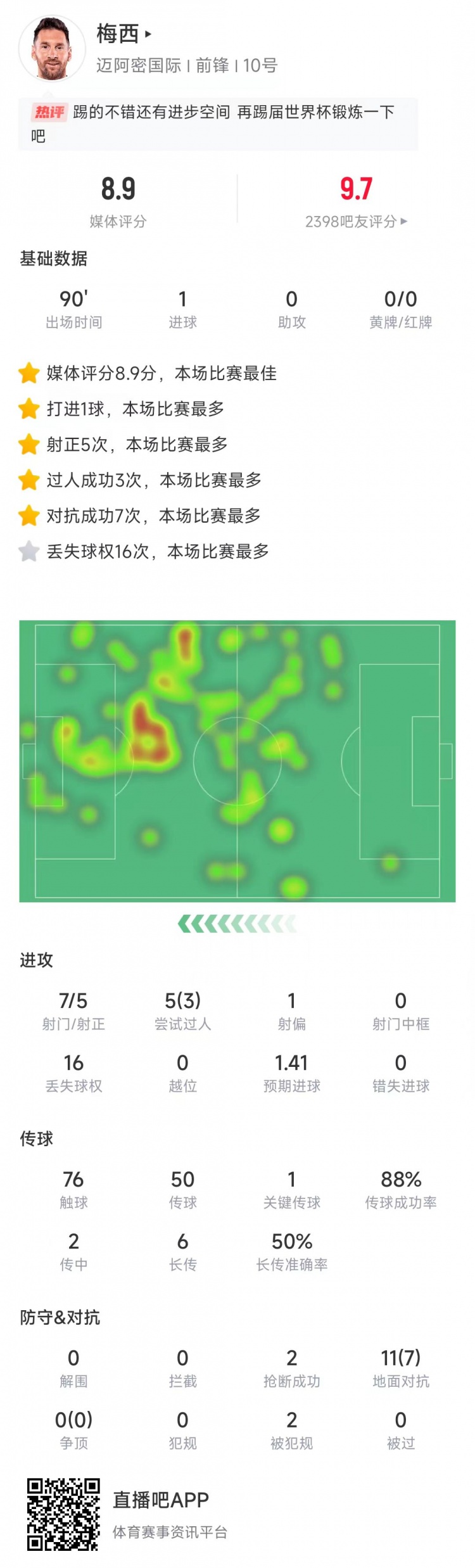 挑射破門!梅西本場(chǎng)數(shù)據(jù):7次射門5次射正,獲評(píng)8.9分全場(chǎng)最高