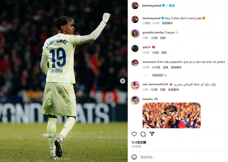 打破西甲4個(gè)半月進(jìn)球荒!亞馬爾社媒曬照慶祝:巴薩球迷們別擔(dān)心