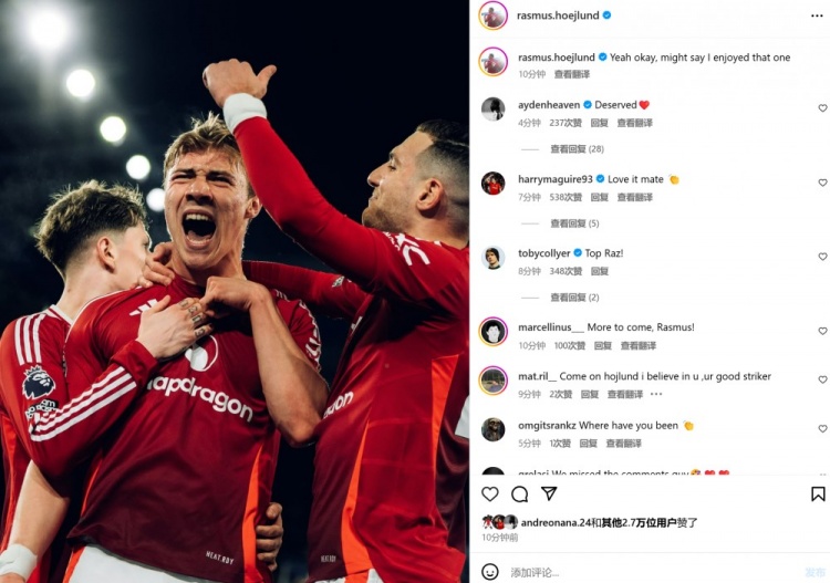 本場進(jìn)球的霍伊倫也終結(jié)了自己連續(xù)21場進(jìn)球荒,賽后他在社媒曬出與隊友慶祝進(jìn)球的合影,配文寫道:“好吧,我承認(rèn)喜歡這種感覺?!?/p>